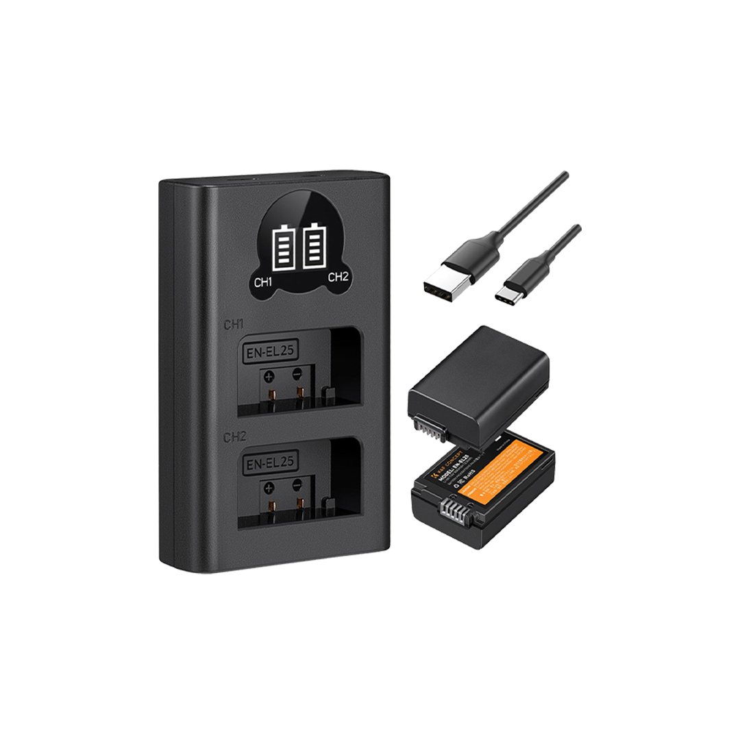 K&F Concept Battery for Nikon EN-EL25 1600mAh 2PCS + Dual Slot Charger – 1 Set Baterai Kamera